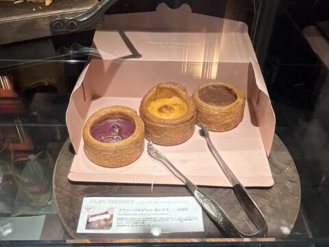 定番のサイズは、一つでもボリューミーで食べ応えのある「フラン・パティシエ」。もう少し小さなサイズで手土産や食べ比べにおすすめなのが、パケモンテ表参道限定の商品「フラン・パリジャン・ボックス」。フラン・パティシエとは異なる食感のパイ生地を使った3個入りの限定セットで、気軽に楽しめるサイズ感と味わいに仕上げられています。プレゼントにはもちろん、1人のおやつタイムに味わうのもよし、みんなで色々なフレーバーを楽しむのもよし。フランスの伝統スイーツをぜひ味わってみて下さいね。
