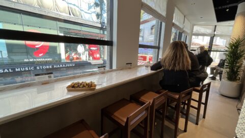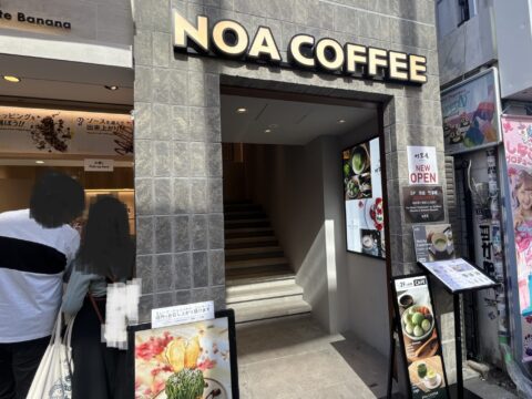 チョコバナナにはトレーをつけてくれますが、トッピングによってはポロポロ落ちて食べにくい…そんな時は、お店の2階にあるカフェで落ち着いて食べるのもおすすめです。2階はノアカフェの新店舗。3階は抹茶屋さん。店内利用の場合はドリンクワンオーダーで、チョコバナナや横のお店のクレープなども持ち込みOK。紙ナプキンやお手拭きも提供してもらえるので、座ってゆっくり写真をとったりついでに休憩もできちゃいます。