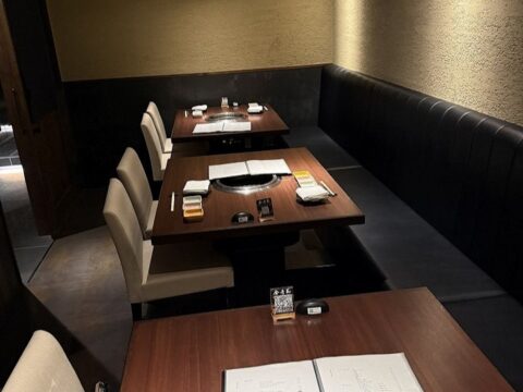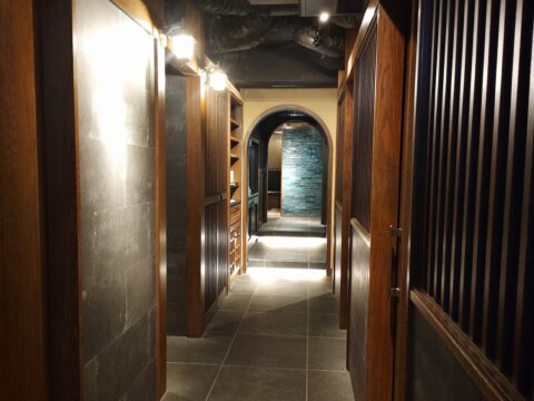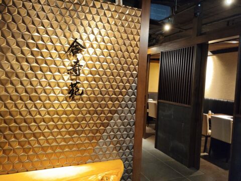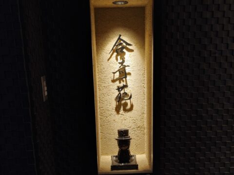 大人の隠れ家と称される合奇苑ですが、入口から店内に至るまでマットブラックで統一され、大変お洒落で落ち着いた雰囲気。SNSなどでデートや会食におすすめと書き込みがあるのも納得です。
