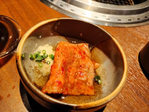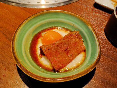 擦った大和芋に卵黄、タレで作られた合奇苑オリジナルの“月見ダレ”でいただくザブトンは、まろやかでお肉なのにつるっと食べられました。