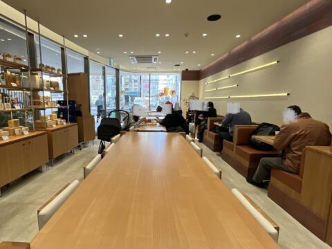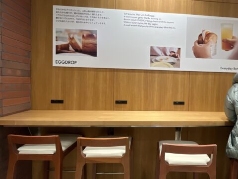 店内は、日本のライフスタイルに合わせた「静けさと温かさ」をテーマに設計されているそうで、窓が大きく木の質感を活かしたインテリアは居心地がよく落ち着いた雰囲気です。カウンター席やテーブル席があり、一人でもグループでもOK。仕事の合間や休日のお散歩ランチにもぴったりですね。